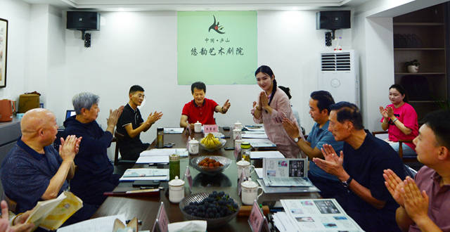 大型原创国风黄梅戏《庐山缘》(暂定名)剧本研讨会今日在中国·庐山悠韵艺术剧院会议室召开。会议邀请到中国艺术研究院研究员谭志湘,中国艺术研究院研究员吴乾浩,著名戏剧理论家、中国剧协《剧本》原主编、中国戏曲表演学会会长黎继德,著名黄梅戏表演艺术家、国家级非遗黄梅戏传承人、梅花奖得主黄新德。