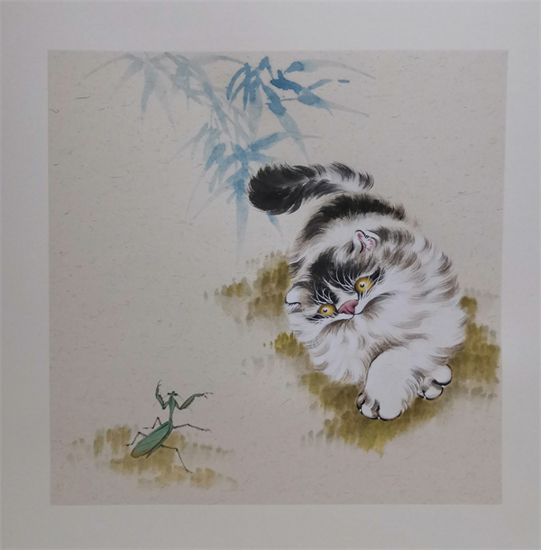 朱玉清在创作中秉承“真”、“美”、“活”的原则,他巧妙地运用笔墨,将猫的骨骼、肌肉、皮毛刻画得惟妙惟肖。他的作品淡中见雅,线条明快,形神兼备,把“御猫”的形象描绘得淋漓尽致。他的猫或犹豫、或甜美、或好奇、或安逸,每一只都有着独特的气质和魅力。猫咪与自然的完美融合,以及与其他小动物的和谐共处,表达了他对生活和自然的赞美。