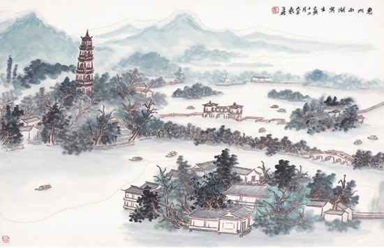 惠州自古素有“半城山色半城湖”的美称,山水秀邃、林木苍郁、生态良好,历史文化底蕴深厚,这里有被誉为“岭南第一山”的罗浮山和南昆山、象头山等几大历史名山,有被誉为“苎萝西子”的惠州西湖,李商隐、苏东坡、祝枝山等历代文豪与西湖皆有不解之缘,还有惠州各地的古建筑,承载着千年客家文化的秋长围屋等等,都曾吸引了古今无数仙家名人、文人墨客驻足,留下了宝贵的文化遗产和光辉足迹。惠州是袁学君先生的故乡,他离乡赴京学习工作十五载,今年恰逢惠州得名一千年,为此,袁学君先生多次返乡重游,并多次组织以惠州为主题的采风写生活动,他用手中的画笔书写着家乡的大好河山,表达着对家乡的热爱、赞美和祝福。此次展览的《千年惠州》主题展出袁学君先生近两年的惠州写生作品,以山水画的形式向全国人民展示一座历史悠久、山清水秀、现代化发展迅速的“岭东雄郡,山海惠州”。